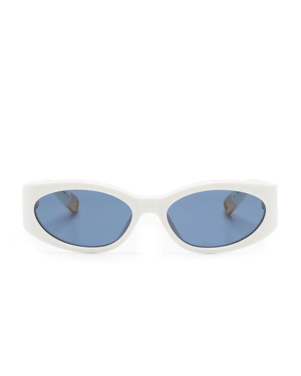 White acetate oval frame blue tinted lenses UV-protective lenses logo-engraved arm straight arms with curved tips logo-engraved gold-tone hardware to the tip These glasses come with a protective case. Size: One Size. Gender: Unisex. Material:Acetate.