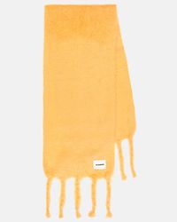 Go to SSENSERectangular hand-knit mohair- and wool-blend scarf. · Logo patch at face · Fringed detailing at ends · L86 x W9.25 Supplier color: Red Colour: red