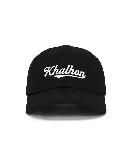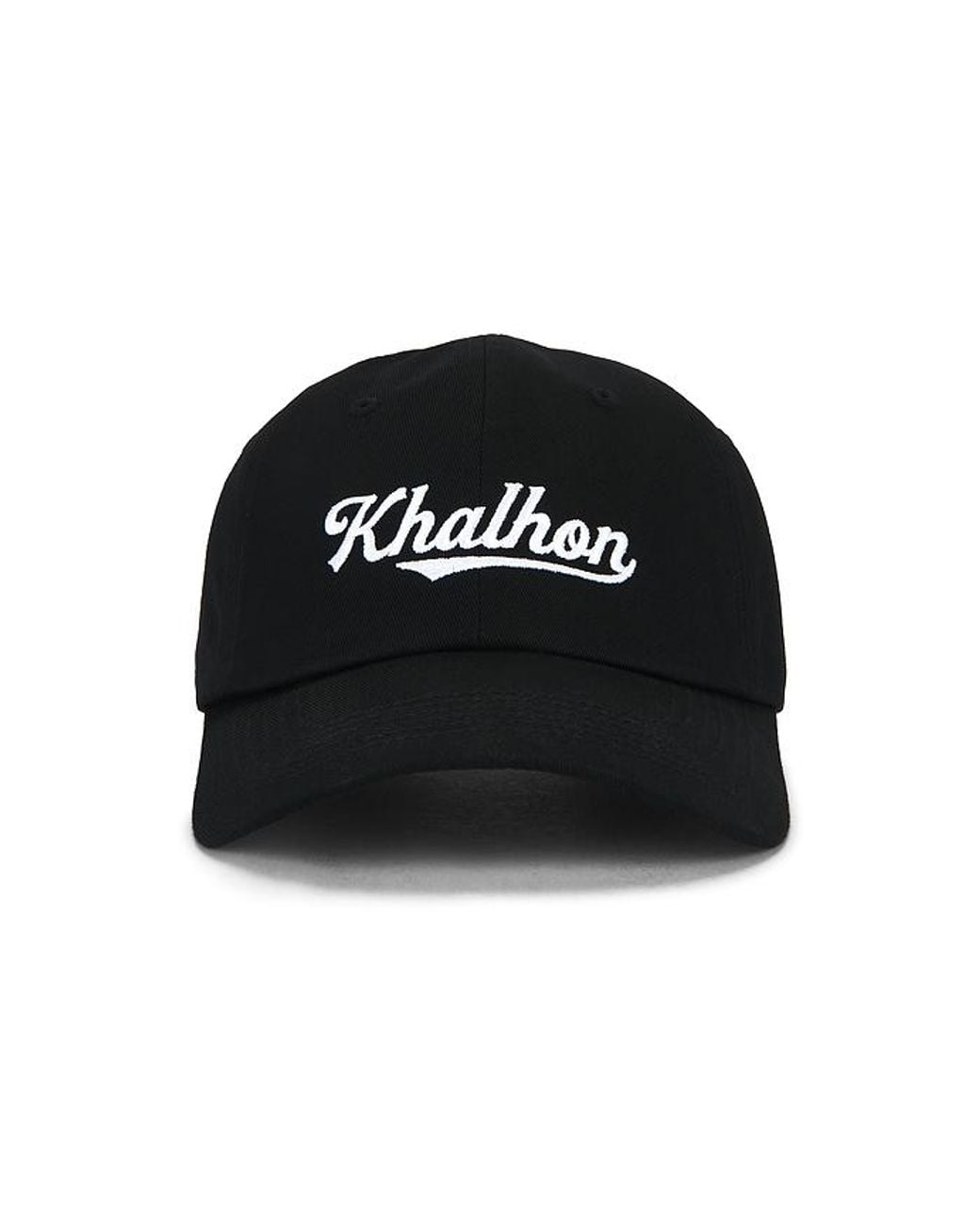 Khalhon Logo Ball Cap in Black. Khalhon Logo Ball Cap in Black. 100% cotton. Adjustable back strap. Embroidered logo. Ventilating eyelets. Brim measures approx 3 in length OS measures approx 23 in circumference. KLHO-MA1. 11-1-41-71-001. Colour: black