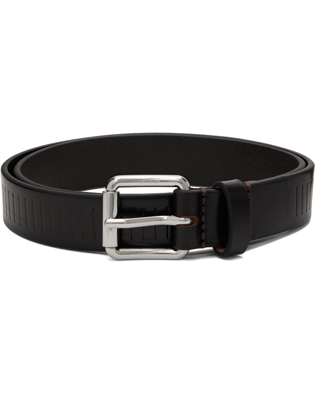 Buffed leather belt. · LWG-certified leather · Stripes embossed throughout · Pin-buckle fastening · W1 Supplier color: Dark brown Colour: black