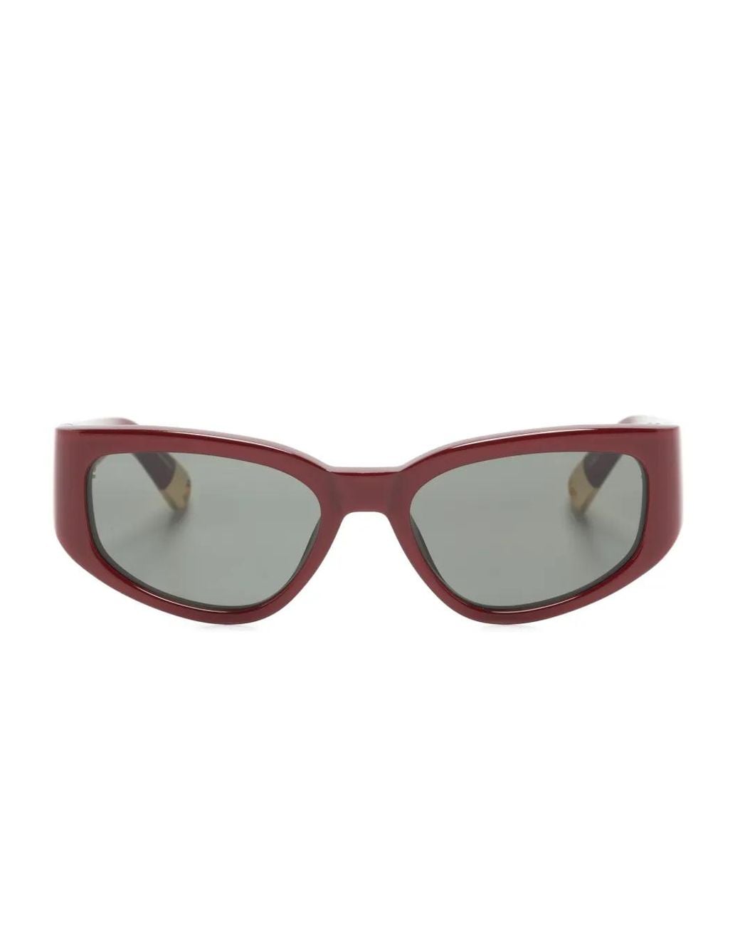 Bordeaux red acetate rectangle frame grey tinted lenses gold-tone logo at the arm contrasting tips straight arms with curved tips These glasses come with a protective case. Size: One Size. Gender: Unisex. Material:Acetate.