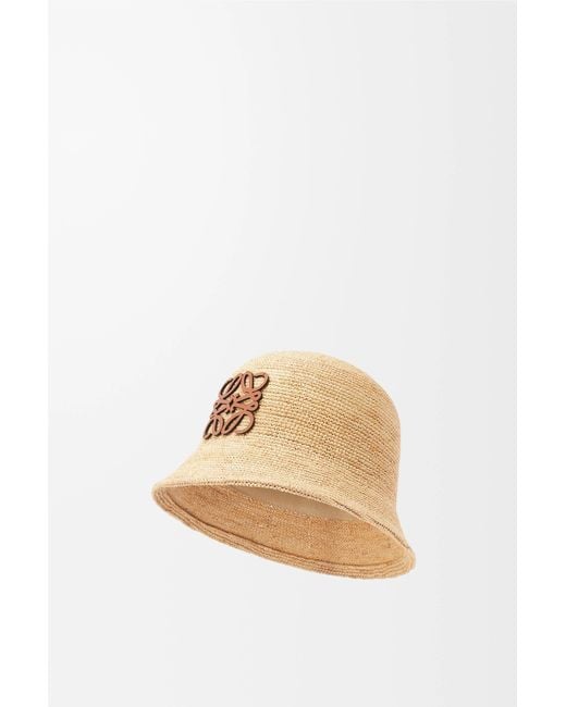 Bucket hat crafted in raffia with an Anagram calfskin patch. Colour: natural