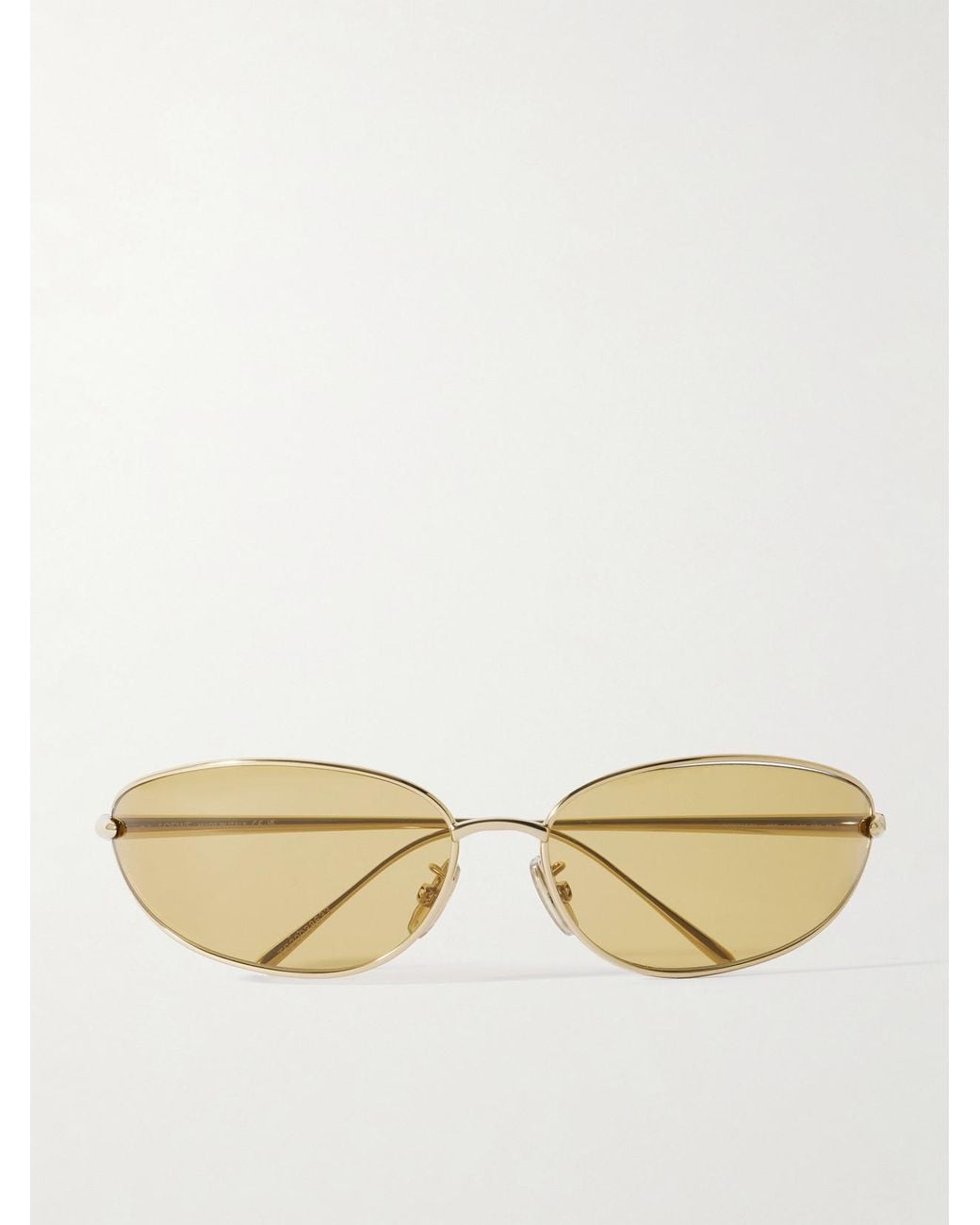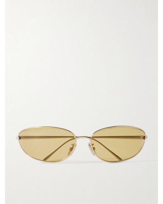 LOEWE Eyewear takes an experimental yet thoughtful approach to traditional shapes, so each pair of sunglasses feels distinct. This oval-frame style gently curves to follow the shape of your face. They're made from gold-tone metal and have sleek arms etched with the logo. Colour: natural