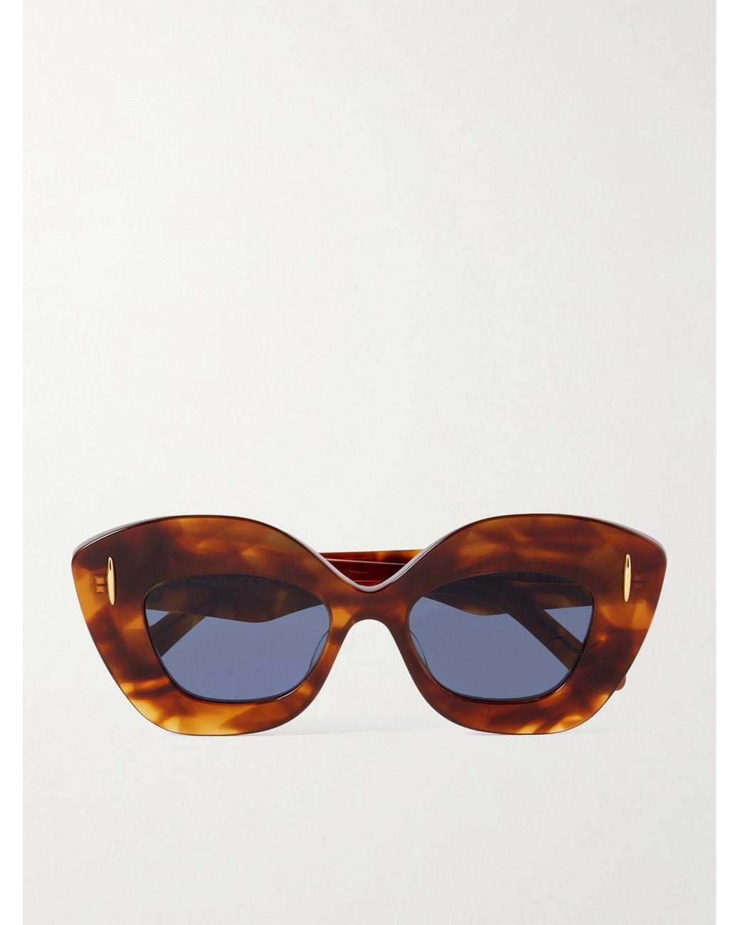 LOEWE Eyewear's sunglasses are designed with oversized cat-eye frames that emulate retro styles. Made from glossy tortoiseshell acetate, they feature gold-tone accents, including the signature 'Anagram' at the temples, and are fitted with dark-blue lenses. Colour: multicolour