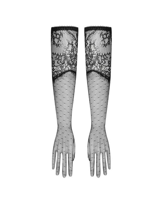 Women's Black Gants En Dentelle Gants Opéra À Pois