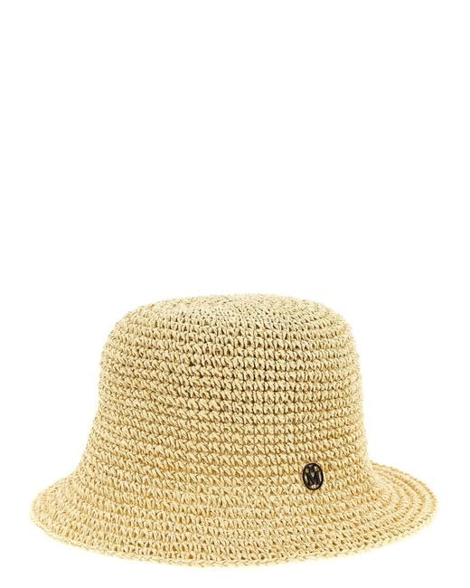 'Pablo' crochet straw hat, cloche model, metal logo appliqué. Handcrafted product, any imperfections are to be considered characteristics of uniqueness. Composition: 100% papier