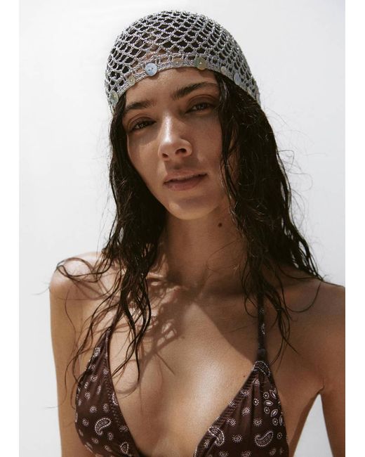 Women's Brown Crochet Hat With Decorative Buttons
