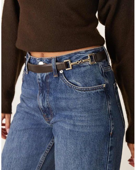 Accessories by Mango Gold-tone buckle Adjustable length Press-stud fastening. Polyurethane/Leather/Zinc. Colour: blue