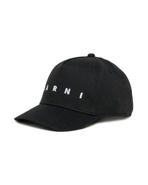 Marni Baseball Cap is a cotton baseball cap with an embroidered logo and an adjustable strap, designed as a reliable everyday accessory for casual wear. Key attributes: Black | Cotton | Adjustable strap closure at back | Curved visor | Embroidered logo on front | Composition & care: 100% Cotton | Hand wash; do not bleach; cool iron (max 110°C); do not dry clean; do not tumble dry; dry flat in the shade. Colour: black