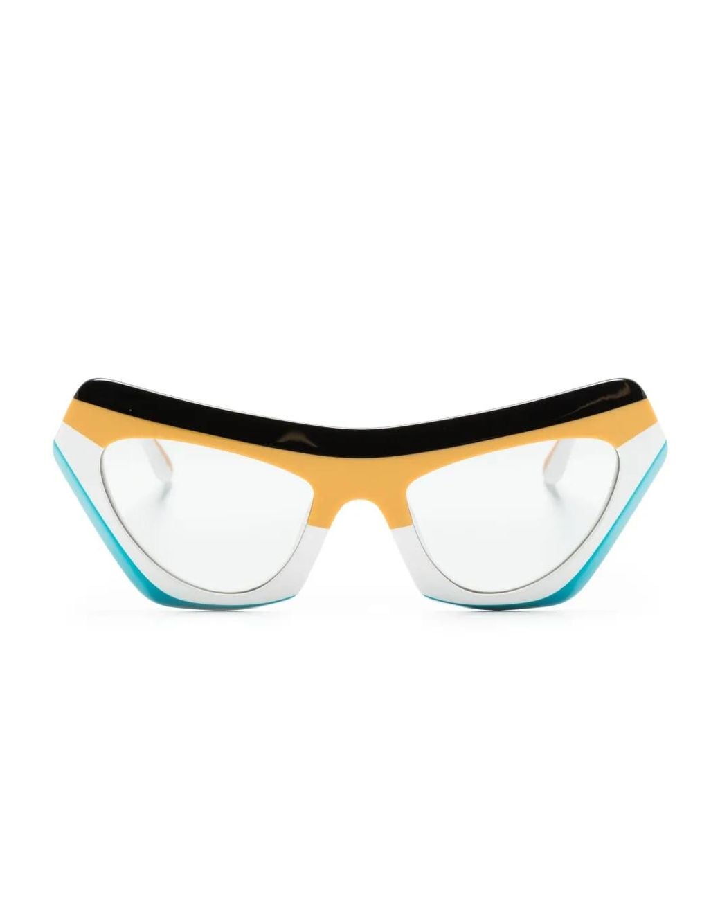 White/multicolour colour-block design cat-eye frame tinted lenses logo-engraved arm straight arms curved tips These glasses come with a protective case. Size: One Size. Gender: Female. Material:Nylon. Colour: white