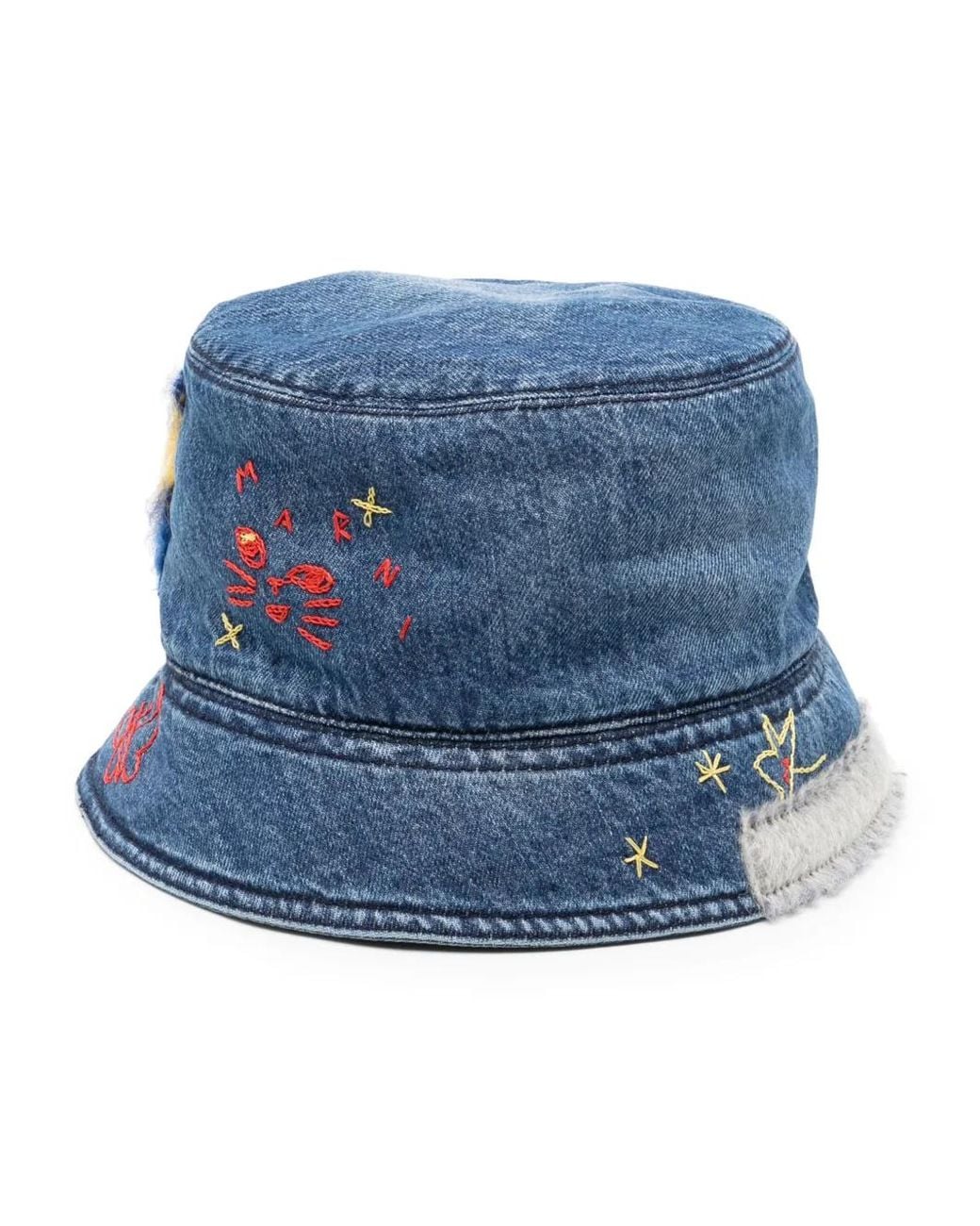Blue cotton embroidered motif curved wide brim slip-on style Size: S. Gender: Male. Material:Cotton/Cotton. Colour: blue