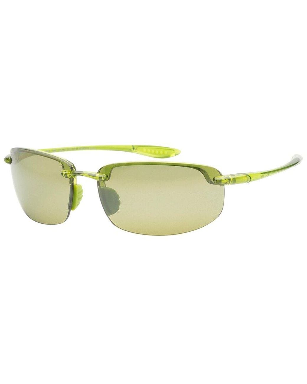 Frame shape: rectangular Frame color: green Lens color: Maui gradient These frames flatter those with an oval or round shaped face Plastic lenses with 100% UV protection Lens: 64mm wide Bridge: 14mm wide Arms: 140mm long Imported Model #: MJ0407S-008