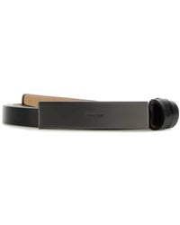 Flat belt in soft calfskin leather, characterised by a cufflink fastening with pawl and logoed metal loop. Finished with second leather loop and square toe cap. The accessory is delivered with dust bag