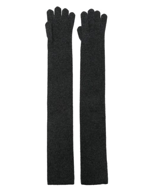 Anthracite grey cashmere knitted construction full-finger design elbow length Size: One Size. Gender: Female. Material:Cashmere.