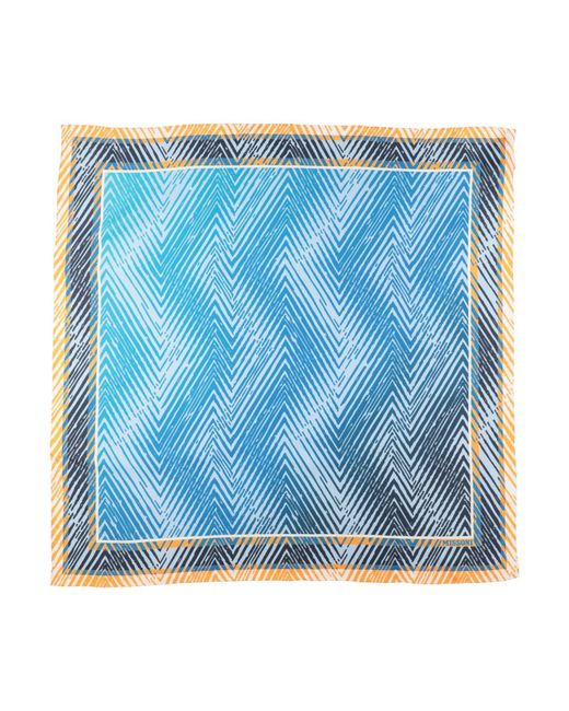 MISSONI. square scarf, twill, signature print, brand logo, dry clean, do not bleach, do not tumble dry. 100% Silk. Colour: blue