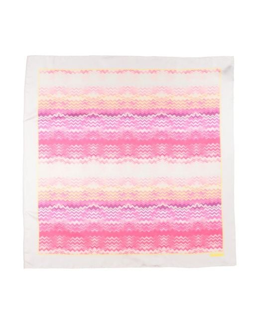 MISSONI. square scarf, twill, signature print, brand logo, dry clean, do not bleach, do not tumble dry. 100% Silk. Colour: pink