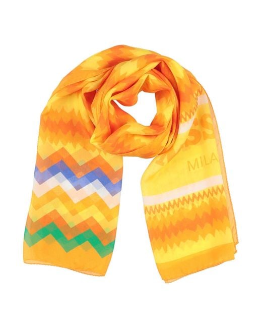 MISSONI. scarf, chiffon, multicolour, brand logo, dry clean, do not bleach, do not tumble dry. 100% Silk. Colour: yellow