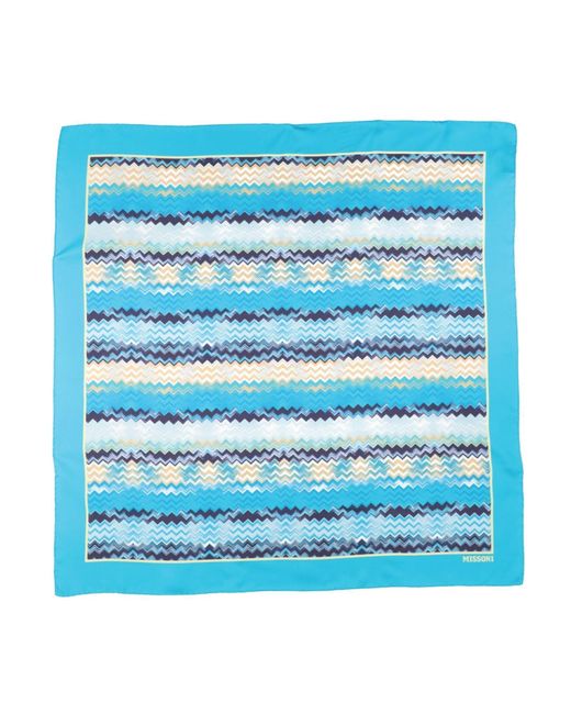 MISSONI. square scarf, twill, signature print, brand logo, dry clean, do not bleach, do not tumble dry. 100% Silk. Colour: blue
