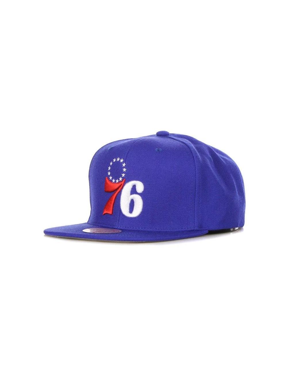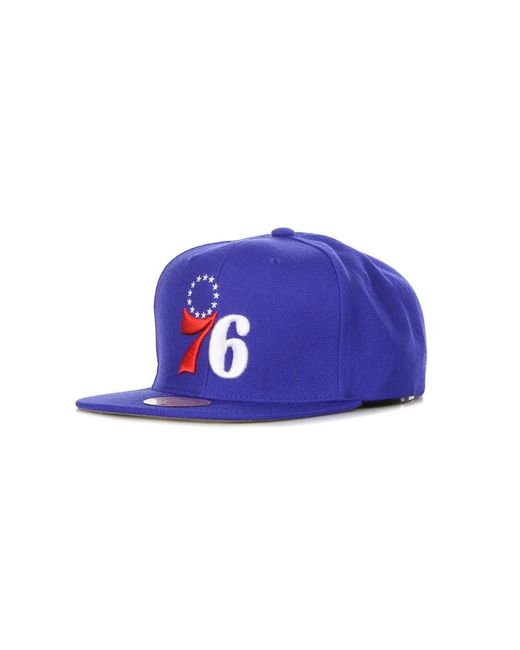 Elevate your style with this Mitchell Ness Flat Visor Cap featuring an adjustable snapback closure. Celebrate the Philadelphia 76ers basketball team with the 3D logo embroidered on the front. Crafted from 85% acrylic and 15% wool, this cap is perfect for male fans. Mitchell Ness logo embroidered on the back and label sewn on the inner band. Colour: blue