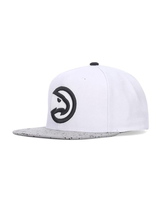 Celebrate the Atlanta Hawks with this Mitchell Ness flat visor cap featuring an adjustable snapback closure. The iconic Atlanta Hawks 3D logo is embroidered on the front, with the Mitchell And Ness logo on the back. Made of 100% Polyester. Colour: white