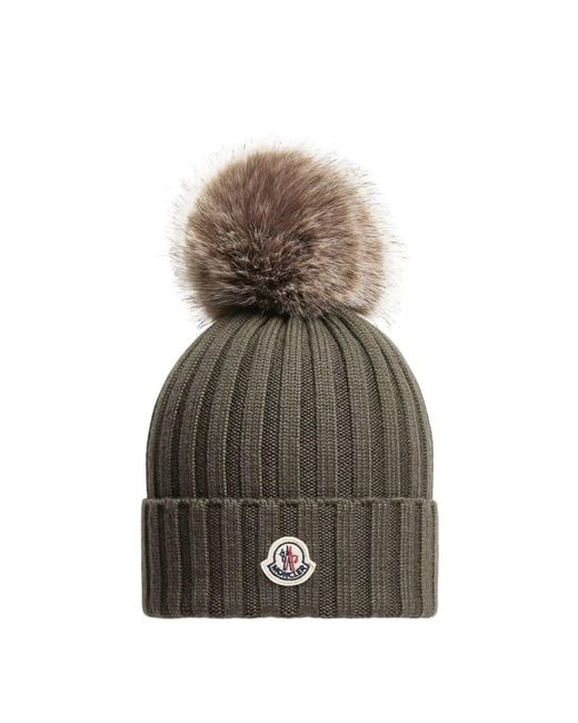 MONCLER WOMENS POM POM HAT Size: OS, colour: KHAKI.