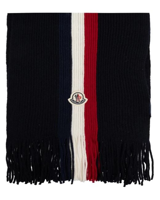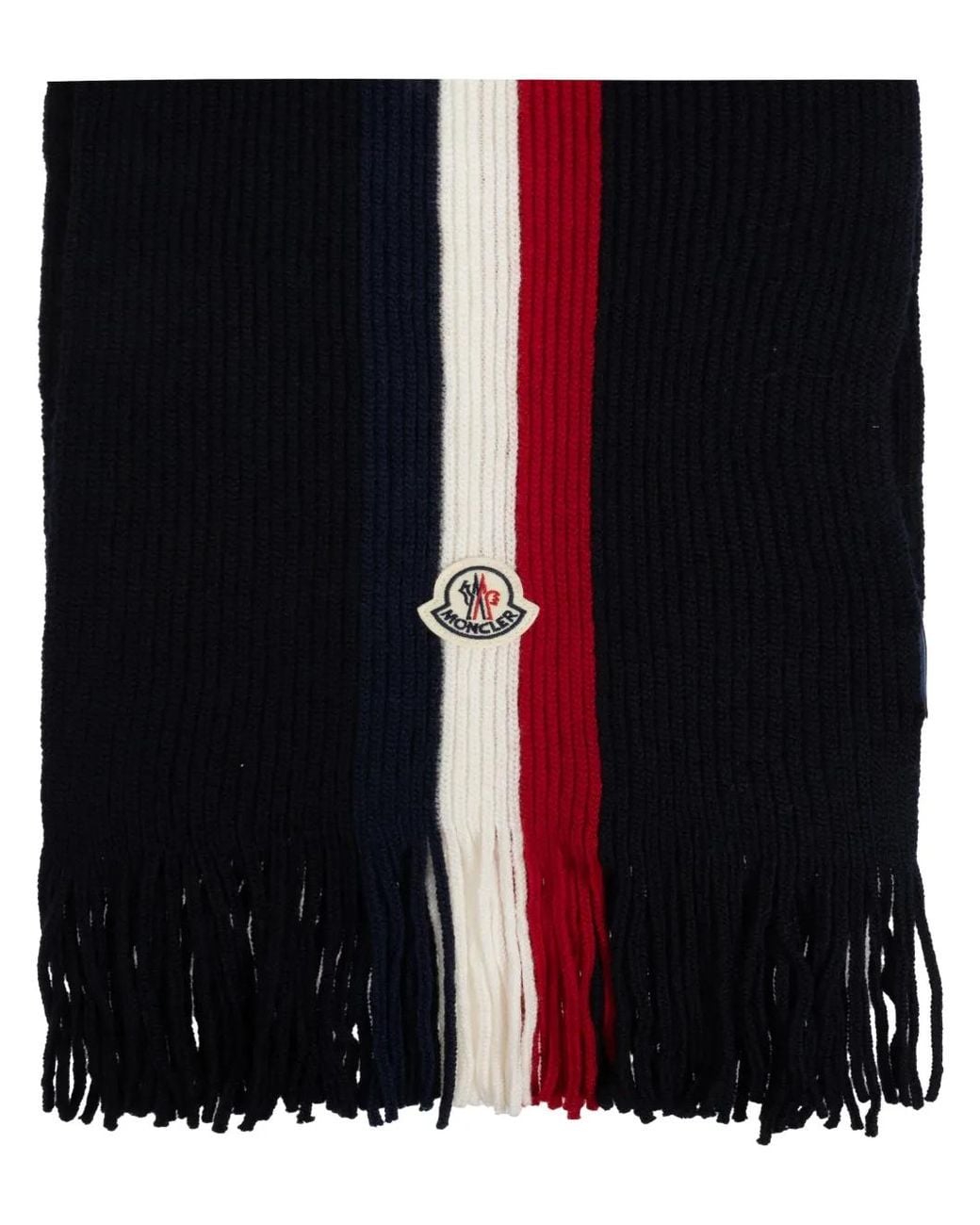 Red/white/blue virgin wool ribbed knit wraparound style logo patch to the front fringed edge Size: One Size. Gender: Male. Material:Virgin Wool.