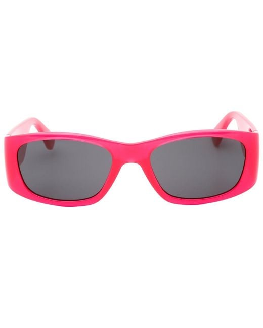 Moschino MOS145 0MU1 IR Pink Sunglasses. Moschino Pink Sunglasses. Be cool and stylish in Moschino sunglasses. Not only are they sleek and fashionable, they offer excellent sun protection that is both comfortable and sophisticated. Get ready to rock the season in style!. Lens Width = 55mm, Nose Bridge Width = 18mm, Arm Length = 135mm, Made In China. Moschino MOS145 0MU1 IR Pink Sunglasses. Sunglasses, Sunglasses Case, Cleaning Cloth and Care Instructions all Included, 100% Protection Against UVA & UVB Sunlight and Conform to British Standard EN 1836:2005. Style Code: MOS145 0MU1 IR Colour: pink