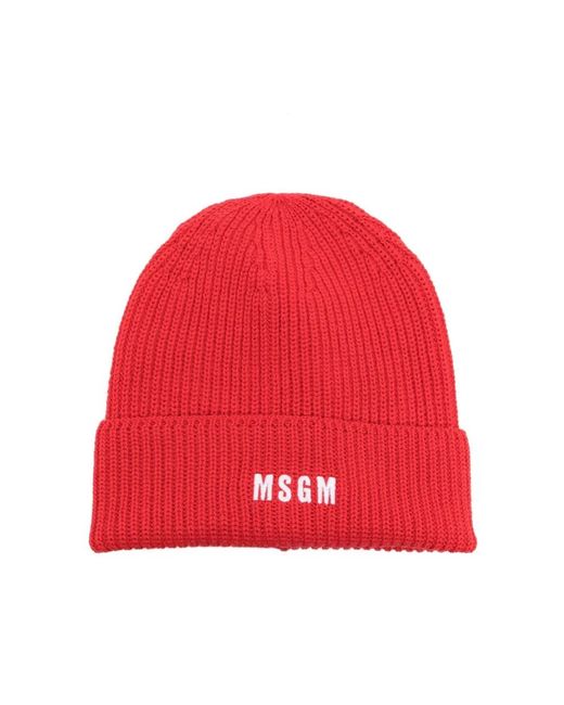 Stay warm and stylish with this logo-embroidered knitted beanie from Msgm. Made with a luxurious merino wool blend in a vibrant poppy red colour, this beanie features a classic ribbed knit design, an embroidered logo, a turn-up hem, and a convenient pull-on style. Perfect for adding a trendy touch to any outfit, this beanie is a must-have accessory for fashion-forward females. Colour: red
