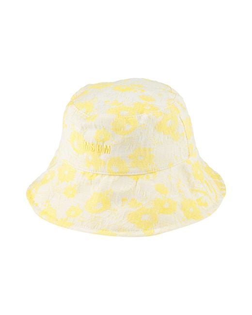 MSGM. bucket hat, woven, floral-print, embroidered logo, wide brim, dry clean, do not bleach, do not tumble dry. 86% Polyester, 14% Cotton.