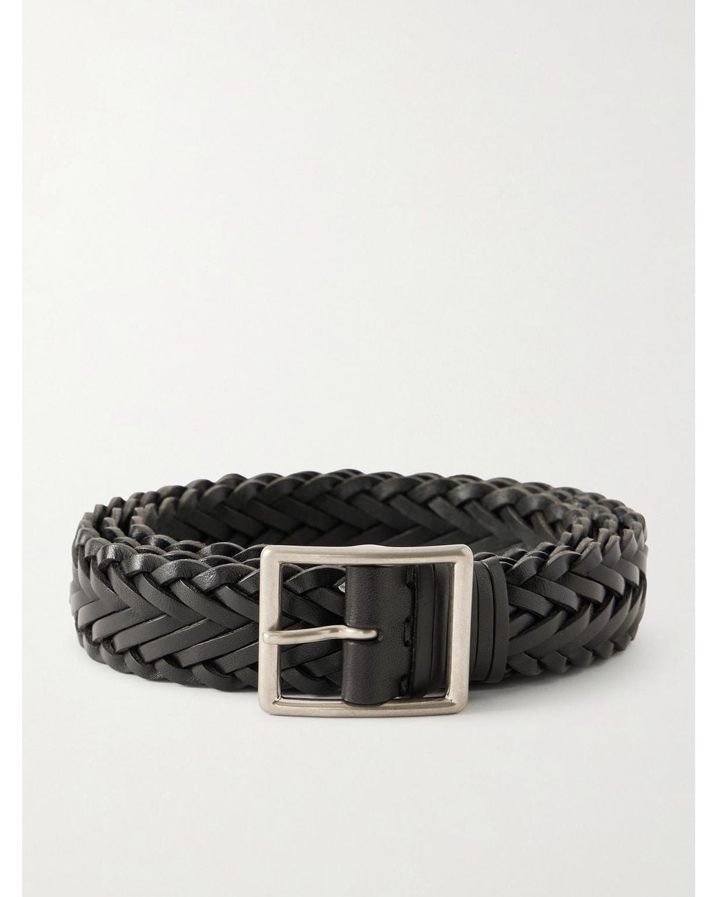 Nili Lotan's belt is meticulously woven in dual braids of supple leather that lend artful texture. It's centred with a square silver-tone buckle and comes in a classic black tone that's easy to style.