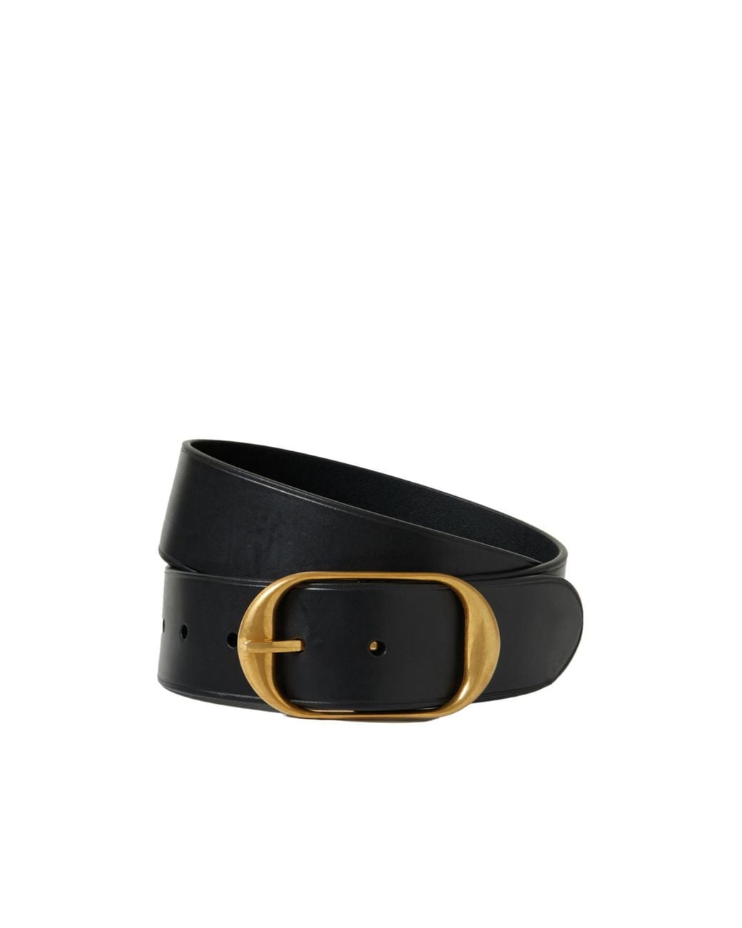 Made of smooth black leather and featuring a vintage gold buckle.