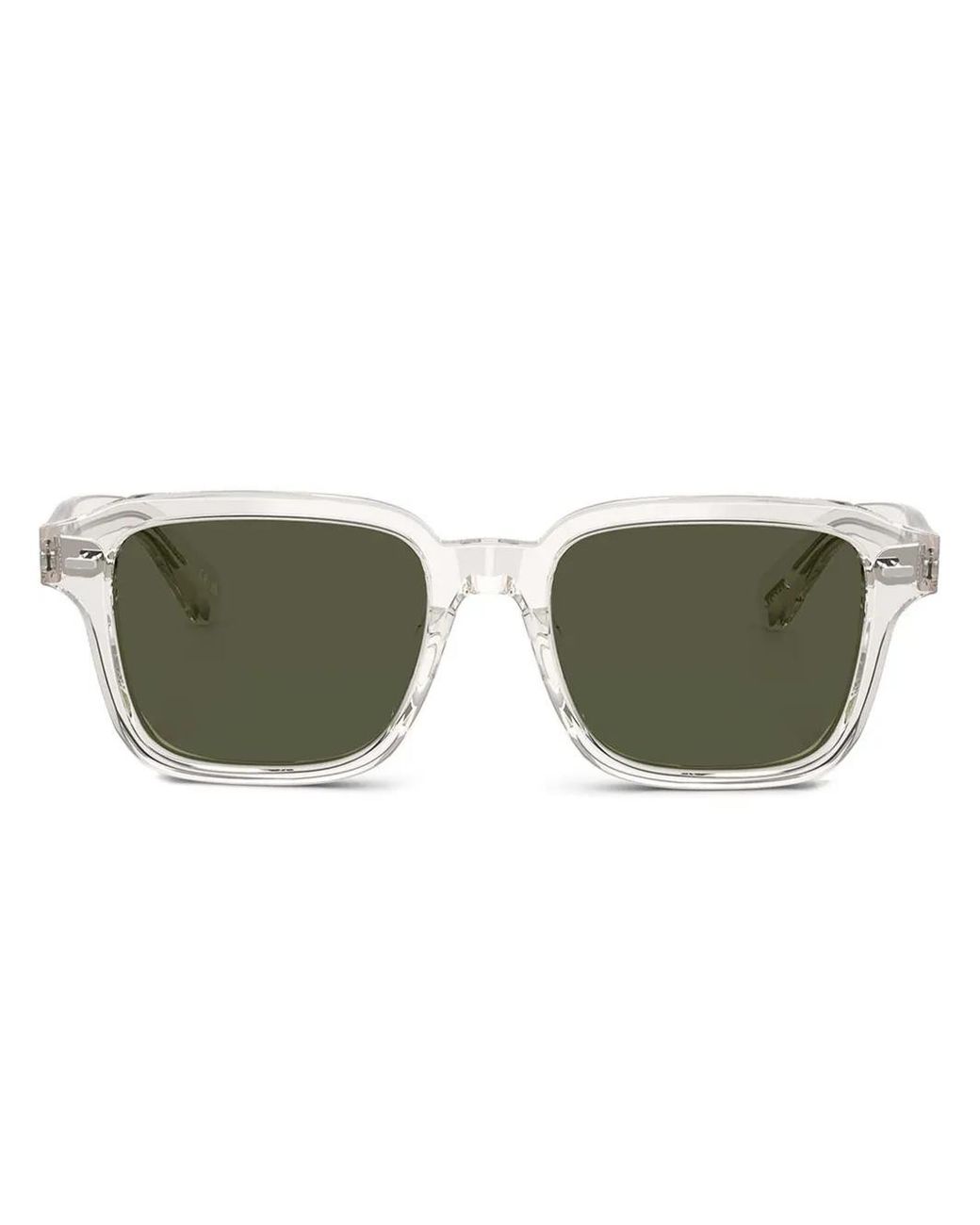 White acetate transparent design green tinted lenses square frame straight arms Size: 51. Gender: Unisex. Material:Acetate. Colour: green