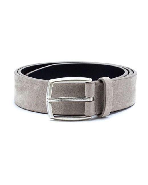 Orciani Nubuck Belt combines a light grey nubuck strap with a silver-coloured metal buckle for a refined, versatile finish suitable for everyday and tailored looks. Key attributes: Grey | Grey | Nubuck | Silver-coloured metal buckle | Nubuck finish | Dimensions & fit: Height 3 cm | Composition & care: Leather Colour: black