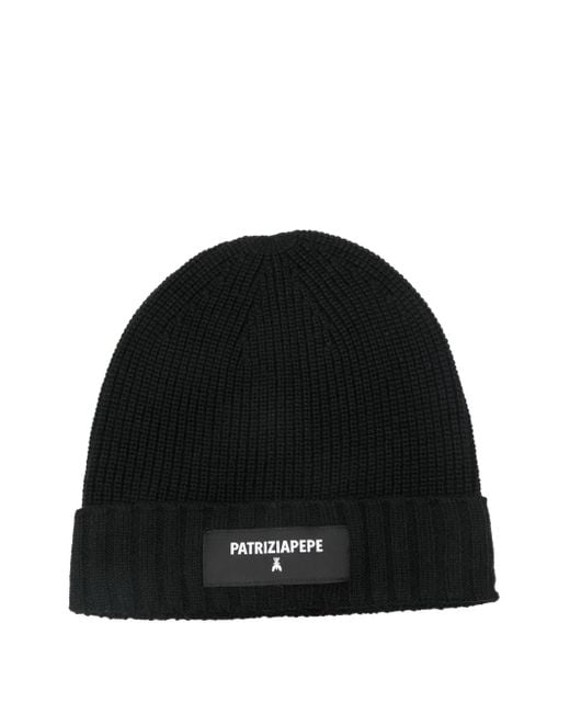 Women's Black Logo-Appliqué Ribbed-Knit Beanie