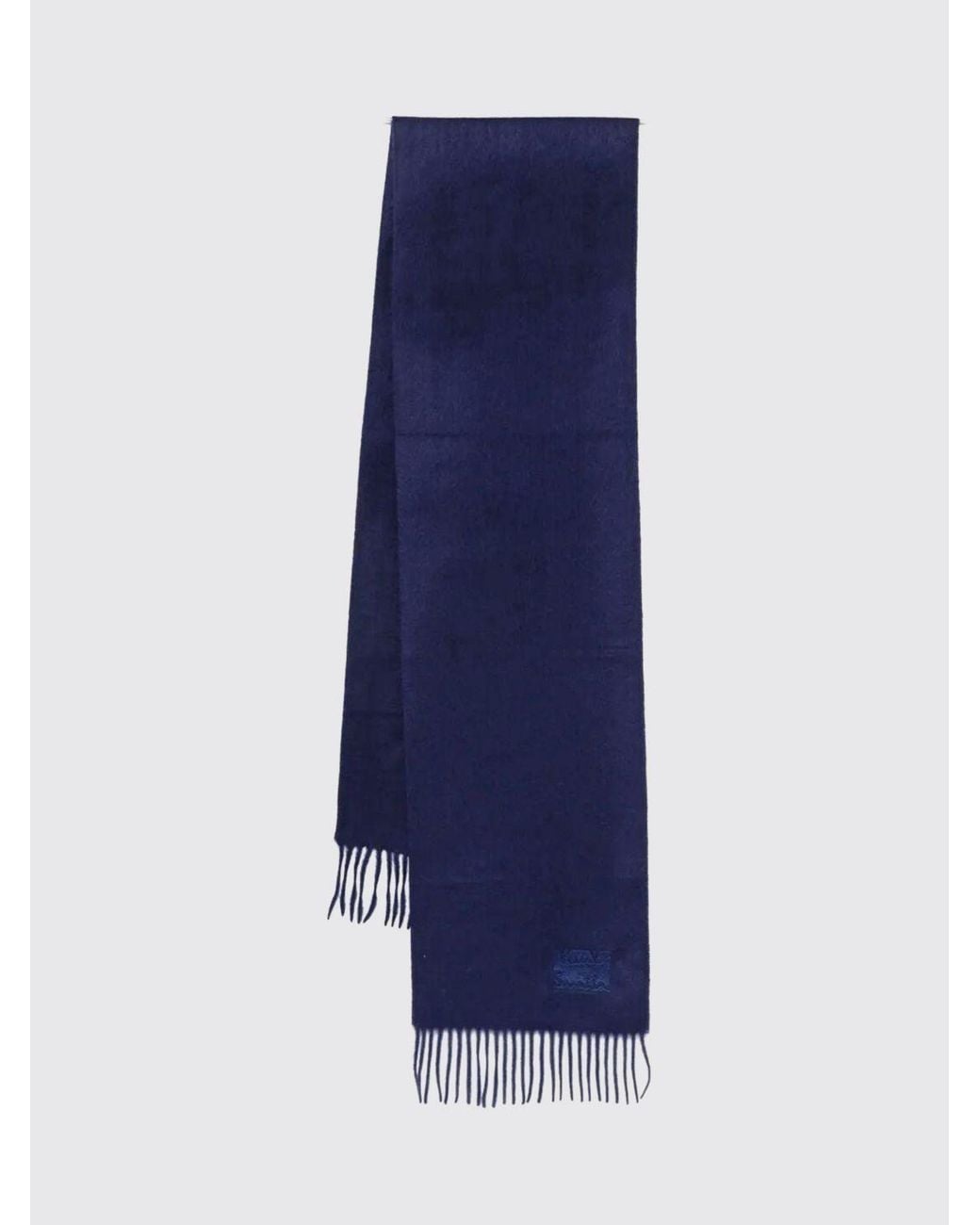 Logo-Embroidered Fringed Cashmere Scarf - Blue