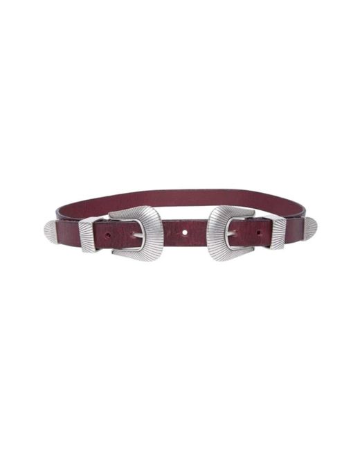 Elevate your outfit with this burgundy double buckle belt from Pepe Jeans. Crafted from 100% cow leather, featuring engraved buckles and smooth leather. Embossed with the Pepe Jeans logo, this belt offers a classic fit. Size S: 74.5 cm length, 2.3 cm width. Size M: 84.5 cm length, 2.3 cm width. Colour: purple