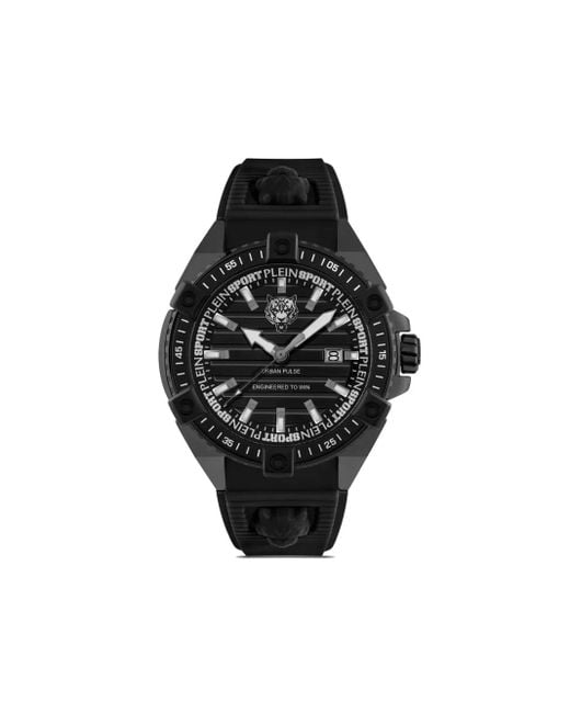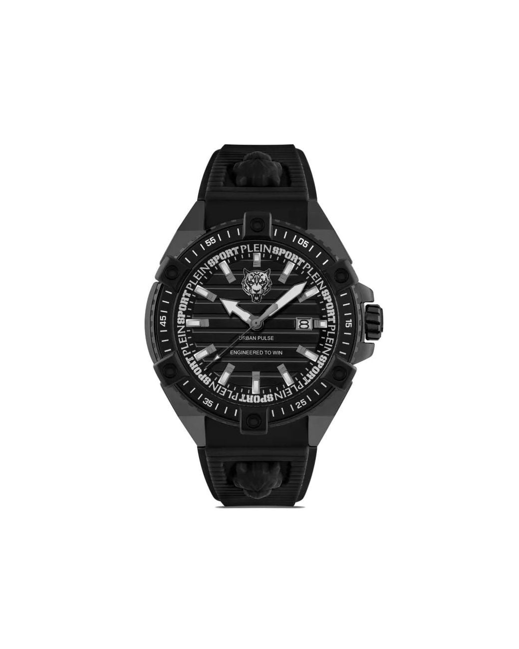 47mm stainless steel quartz movement black signature Tiger motif index dial baton hands round face fluted bezel rubber strap tiger plaque detail pin-buckle fastening date indication water resistance up to 50m/5 ATM This item comes with a standard two-year warranty from the boutique. Size: One Size. Gender: Male. Material:stainless steel/Silicone. Colour: black