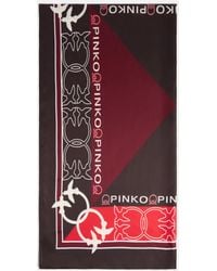 Go to PINKOVersatile maxi-scarf in fine combed merino wool, which can be worn around the neck or as a shawl. The iconic design features the PINKO lettering logo with contrasting block characters and jacquard detailing: