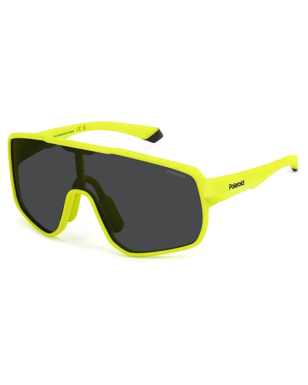 Polaroid PLD 8070/S Sunglasses combine a bold single‑shield lens with polarized optics for high‑visibility outdoor use. The design emphasizes full coverage and stable wear for active days in bright conditions. Key attributes: Yellow | Giallo | Polycarbonate | Polarized lenses | Uv 400 protection | Category 3 lens filter | Full-coverage shield lens | Rubberised nose pads | Lightweight plastic frame | Shield/monosheet lens | Full-rim construction | Shiny finish | Dimensions & fit: Lens width: 99 mm | Bridge: 01 mm | Temple: 130 mm | Composition & care: Polycarbonate Colour: yellow