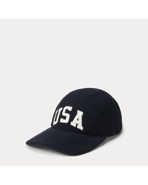 Drawing inspiration from archival Polo Ralph Lauren Lauren sportswear, this unisex fleece cap features appliqués spelling out "USA" at the front and is embroidered with our logo and a historical American flag at the back. Colour: blue