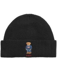 Polo Ralph Lauren Men's Black Solid Flag Bear Beanie