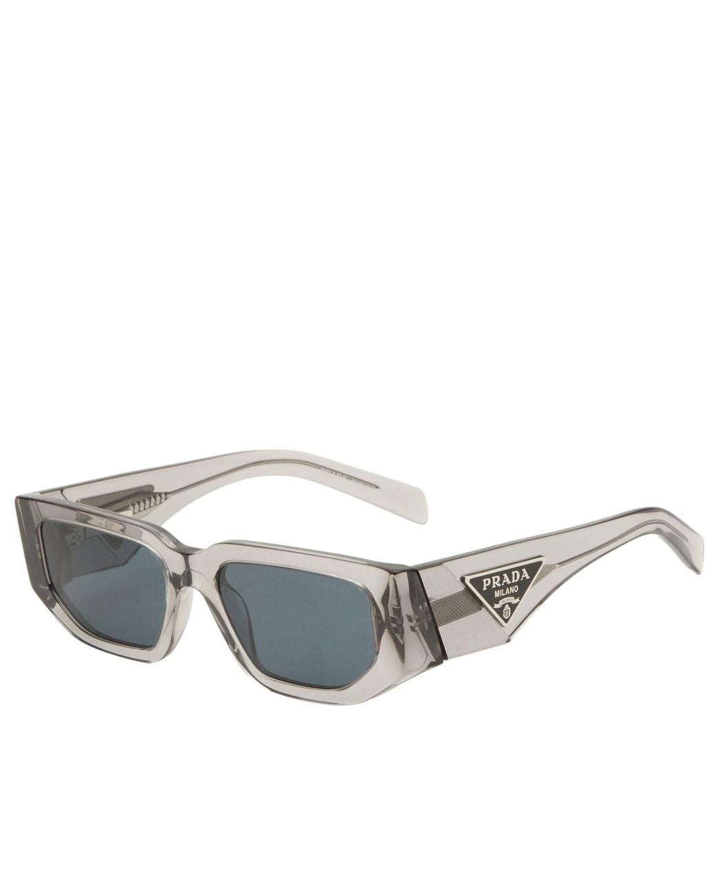 The Prada Eyewear 09ZS sunglasses showcase lightweight acetate arms and a refined square profile, made in Italy for enduring quality. This structured shape flatters rounder and heart‑shaped faces by adding balance and sharpness. A timeless design that transitions seamlessly from casual to elevated looks. Acetate Frames, High Bridge Fit, Rectangle Shape, Printed Branding, Made in Italy, Style Code: 0PR-09ZS-54-18S09T, Shop All Men's Prada Eyewear, Shop All Men's Eyewear, - Prada Eyewear Men's 09ZS Sunglasses Transparent Asphalt/Dark Grey