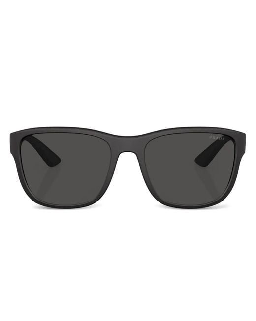 Black acetate logo lettering square frame grey tinted lenses straight arms curved tips These glasses come with a protective case. Size: 59. Gender: Male. Material:Acetate. Colour: black