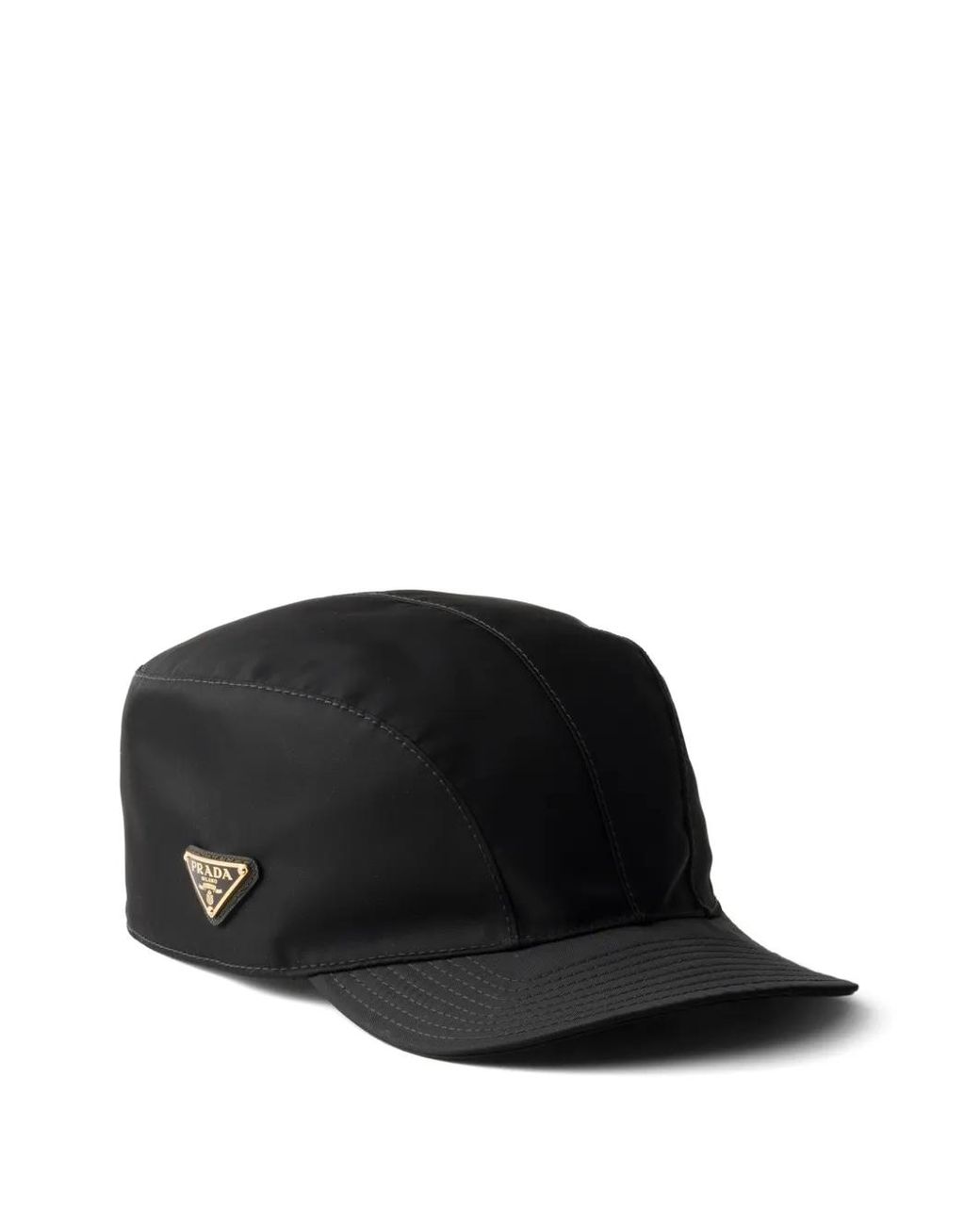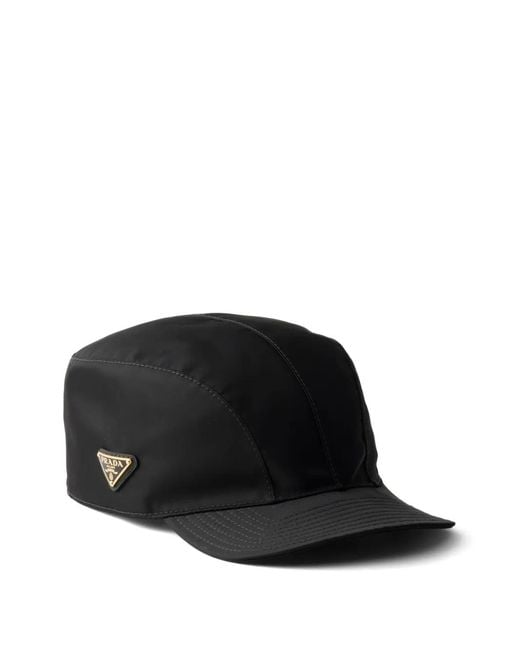 A reinterpretation of the classic baseball cap, this Re-Nylon cap has a light, deconstructed design. New proportions and details give the accessory, decorated with the iconic enamelled metal triangle logo, a refined look. enamelled metal triangle logo cotton lining For sustainable care to preserve the product's characteristics and reduce microfiber shedding, we recommend not washing the item too often. Let the product air out after every use and follow the washing instructions on the label. Size: XS. Gender: Female. Material:Recycled Polyamide/Cotton. Colour: black
