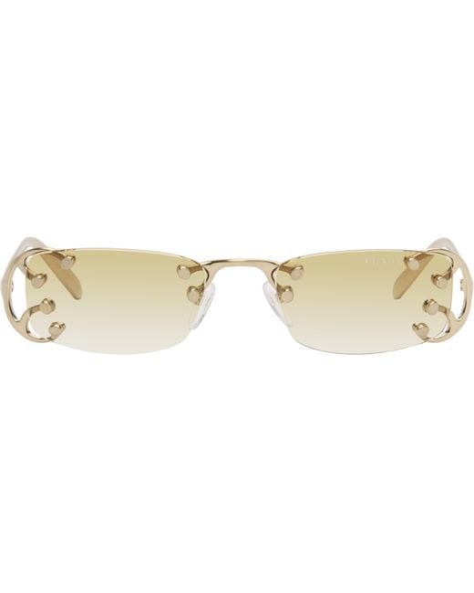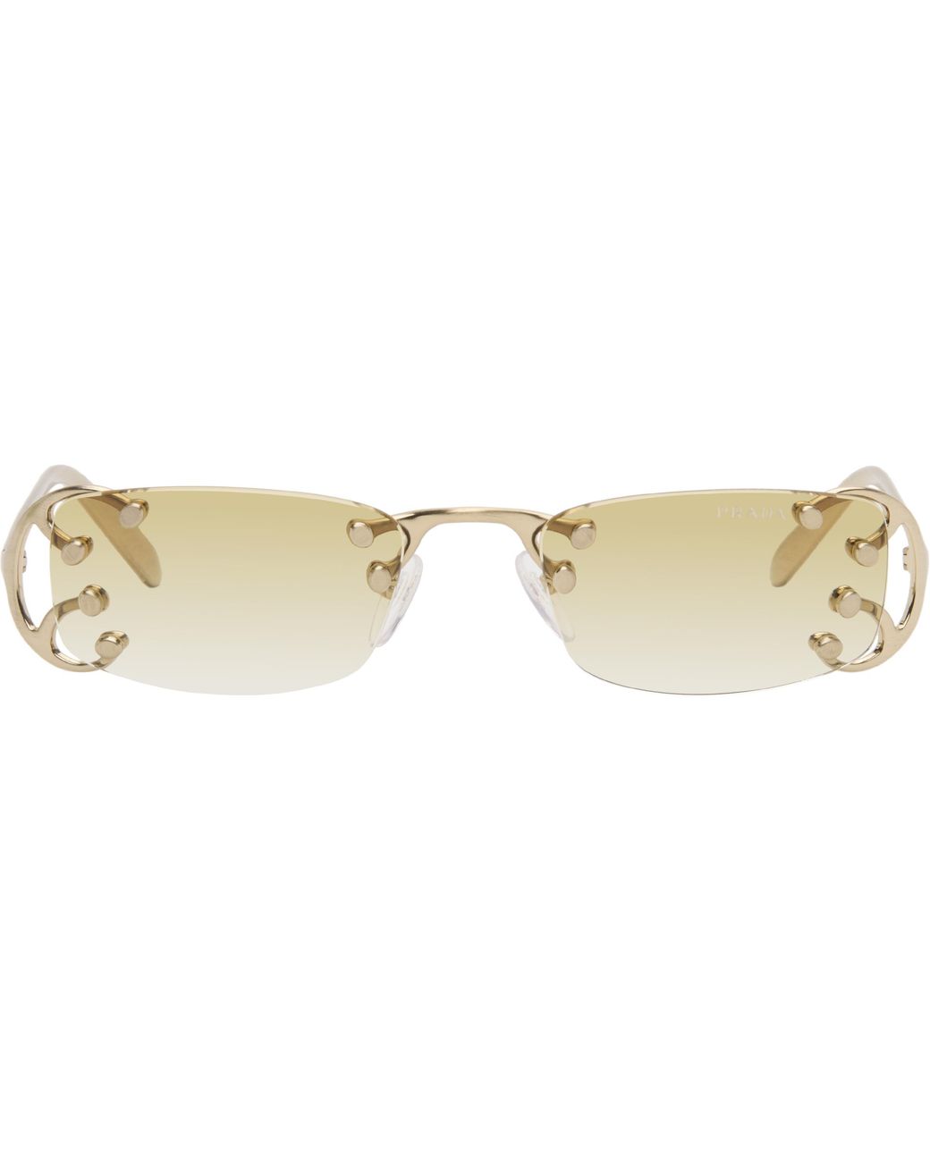 Rectangular rimless metal-frame sunglasses. · Gradient yellow lenses · Logo etched at lens · Adjustable rubber nose pads · Logo engraved at temples · Includes case · Size: 52.20 140 Supplier color: Gold Colour: black
