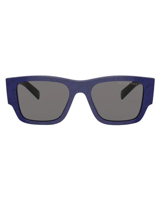 Dark blue logo plaque at the arm square frame tinted lenses straight arms curved tips These glasses come with a protective case. Size: 54. Gender: Male. Material:Acetate. Colour: blue