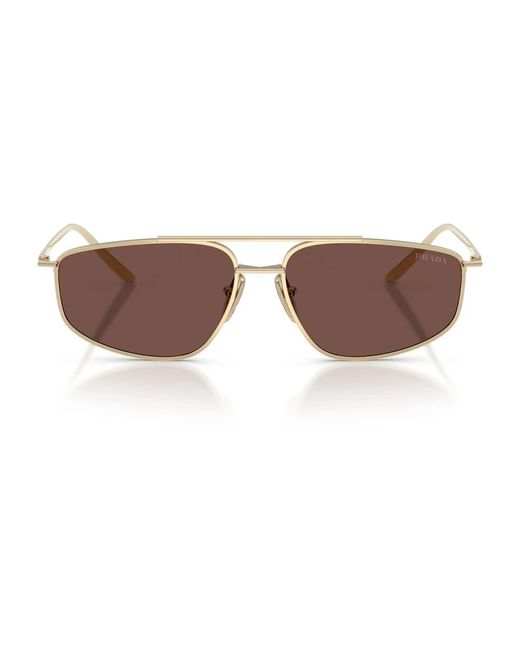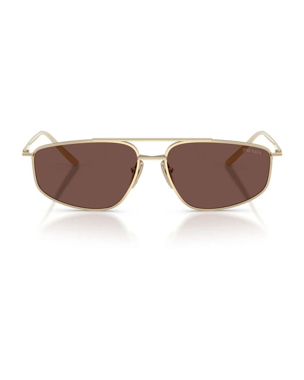 Prada Prc 51S Sunglasses pair the brand’s modern metalwork with a distinctive double bridge for a sleek, contemporary silhouette ideal for everyday wear. Key attributes: Yellow | Oro | Metal | Lightweight construction | Comfortable wear | Adjustable nose pads | Minimal hinges | Double bridge | Thin metal frame | Straight, sharp lines | Laser-engraved logo on temples | Seasonal lens colour options (dark honey, green olive, black chocolate) | Dimensions & fit: Lens width: 58 mm | One size Colour: brown