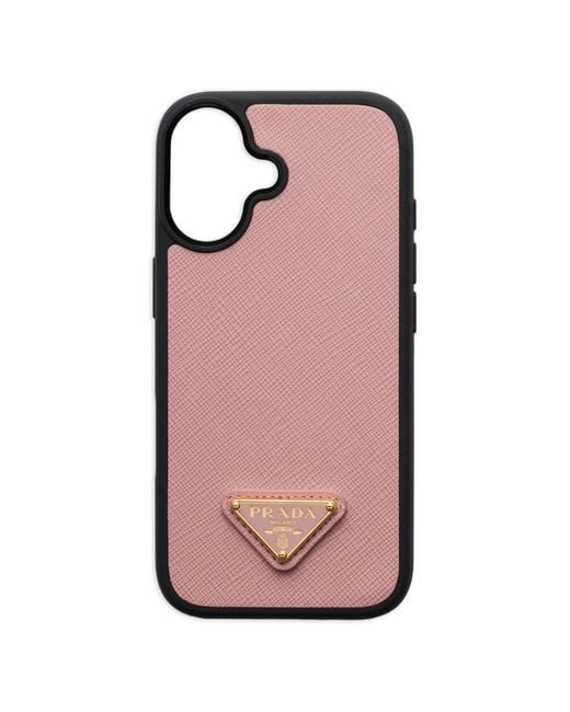 Women's Pink Triangle Logo Leather Phone Case Iphone 17