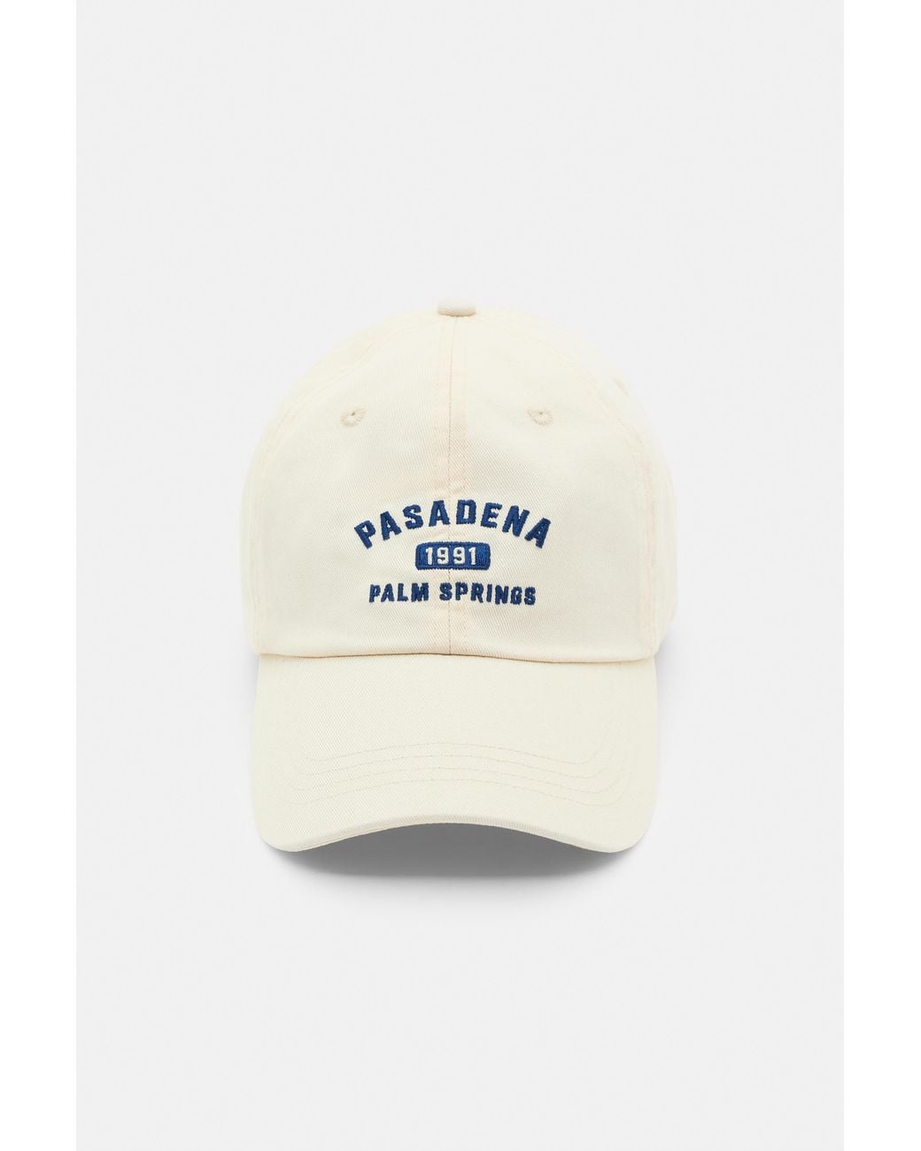 Ecru cap with Pasadena embroidery, peak and adjustable back fastening. Colour: natural