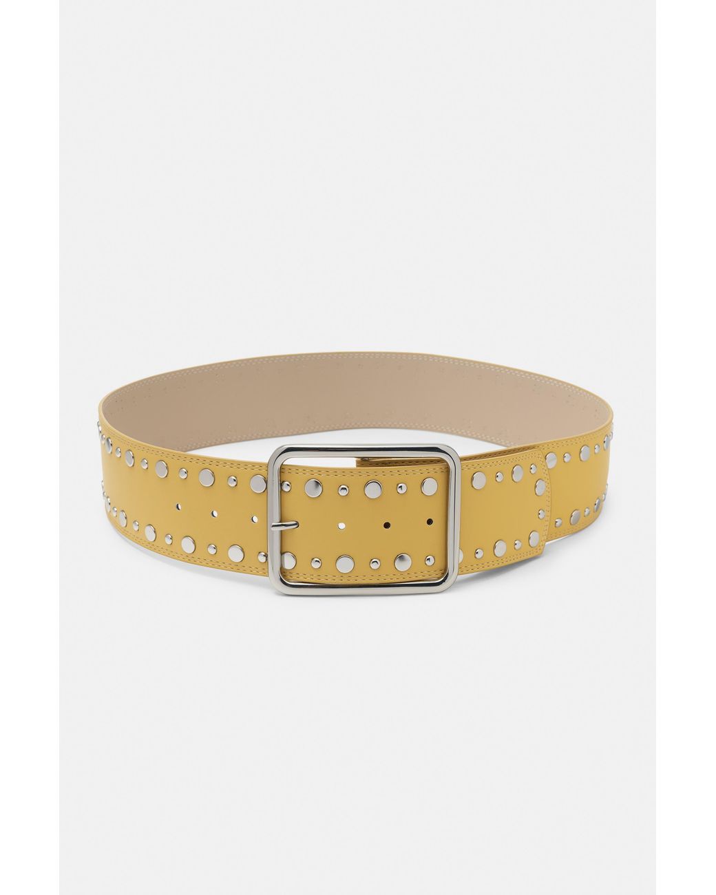 Wide belt with studs and a metallic buckle. Colour: natural